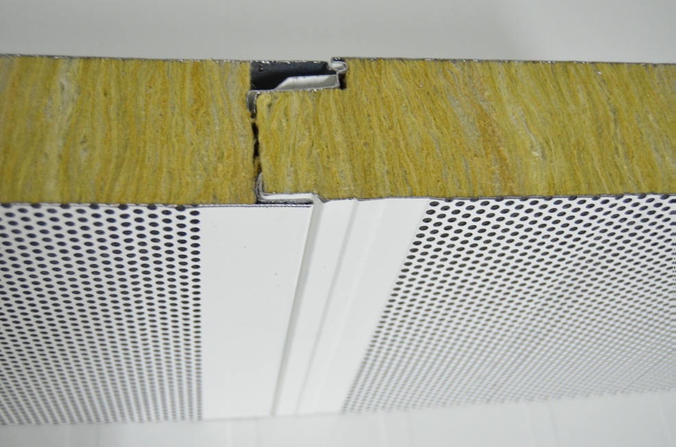 Os paineis e telhas termoacústicas tipo sandwich da Nivelsound Brasil são compostos de chapas metálicas galvanizadas com acabamento com pintura eletrostática na cor branca, preenchidos com placas de la de rocha com densidade 100 kg/m3, fornecidos com largura útil de 1130 mm com comprimentos customizáveis até 6000mm de espessura, nas espessuras 50mm, 75mm e 100mm, podendo ter uma face perfurada para proporcionar o efeito fonoabsorvedor para redução de reverberações.